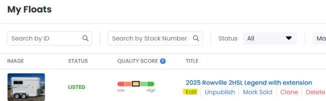 Once clicked this will display any listings or drafts you have, below the asset description is an "Edit" button you can click, this will take you through the same steps when you first created the listing and you can make any changes needed.