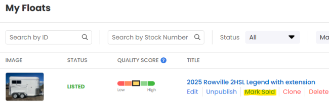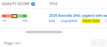 Once clicked this will display any listings or drafts you have, below the asset description is a "Mark Sold" button you can click.